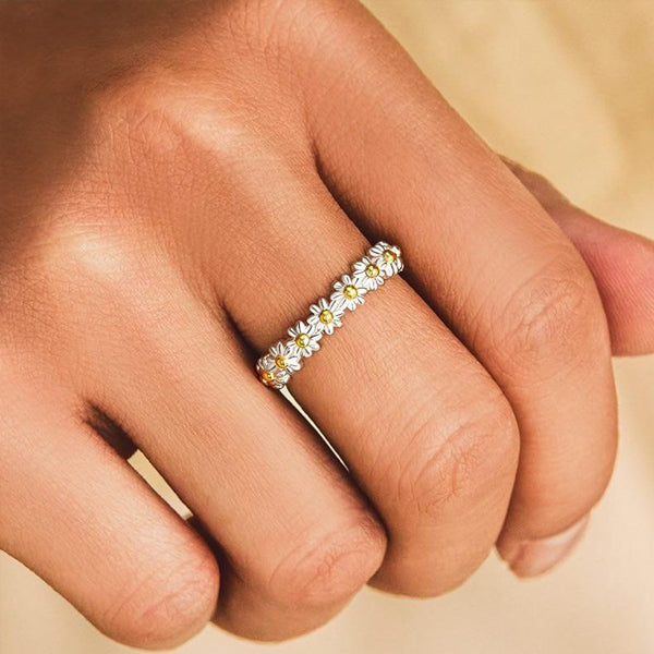 ❀ PREMIUM MATERIAL - : Using high quality copper with environmentally silver plated, long-lasting surface color retention, not easy to fade, anti-oxidation, anti-allergic. The daisy ring is perfect for women, girls.