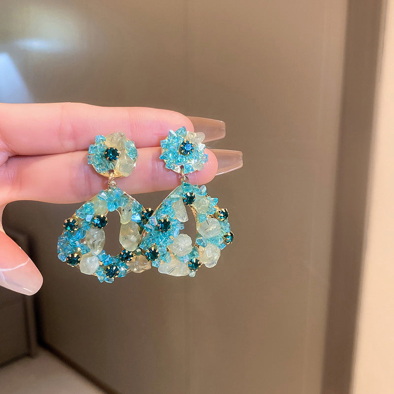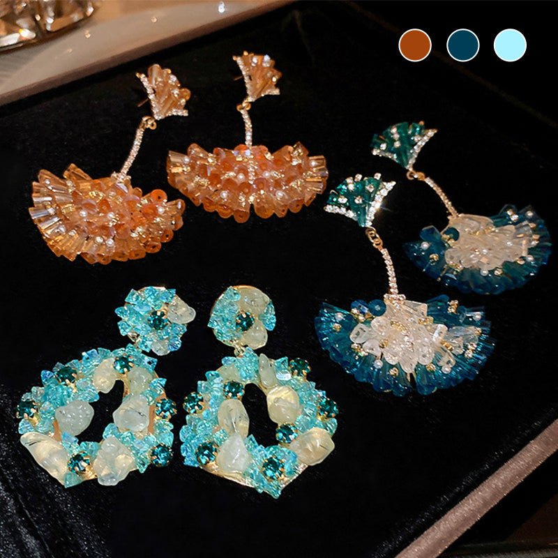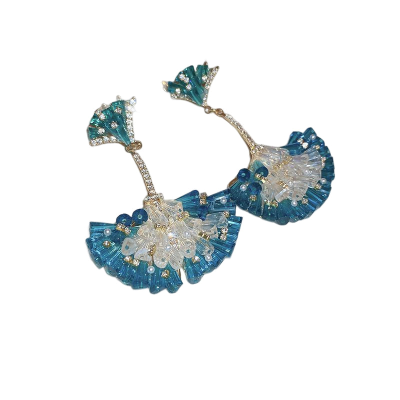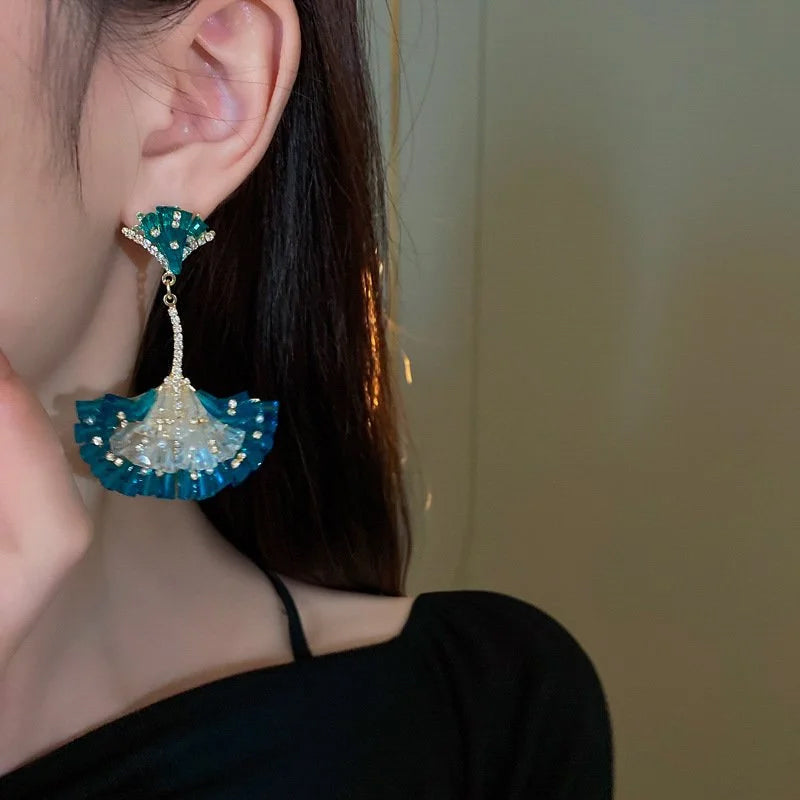 - 1 pair* Diamond Encrusted Crystal Fan-Shaped Ginkgo Leaf Earrings