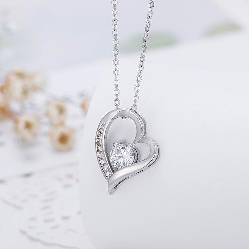 High polished heart pendant surrounding a flawless 6.5mm Cubic Zirconia, embellished with smaller Cubic Zirconia adding sparkle and shine.