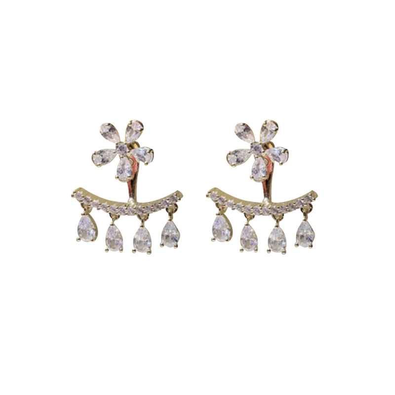 - 1 pair* Flower Zircon Tassel Stud Earrings