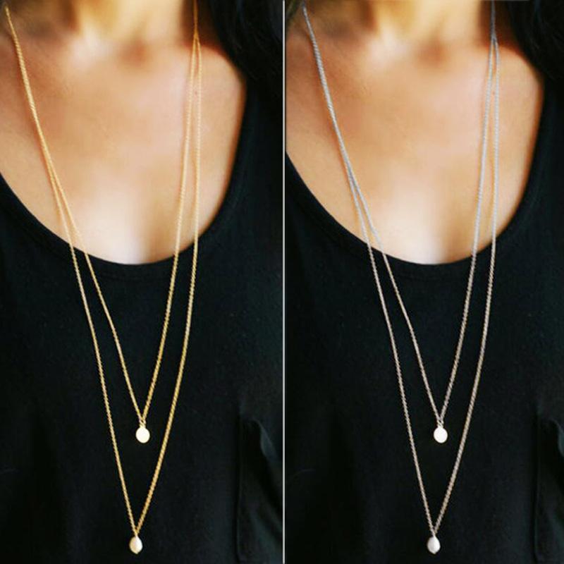 Women Fashion Long Chokers Necklaces Pendants Gold Silver Accessories