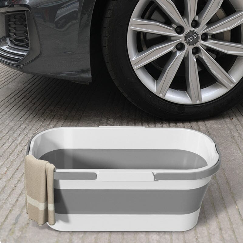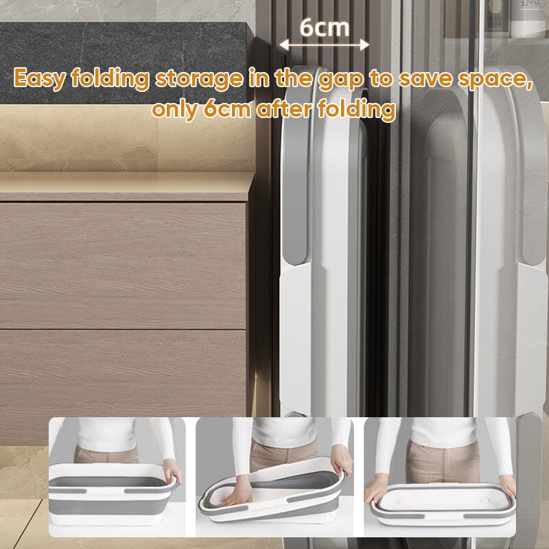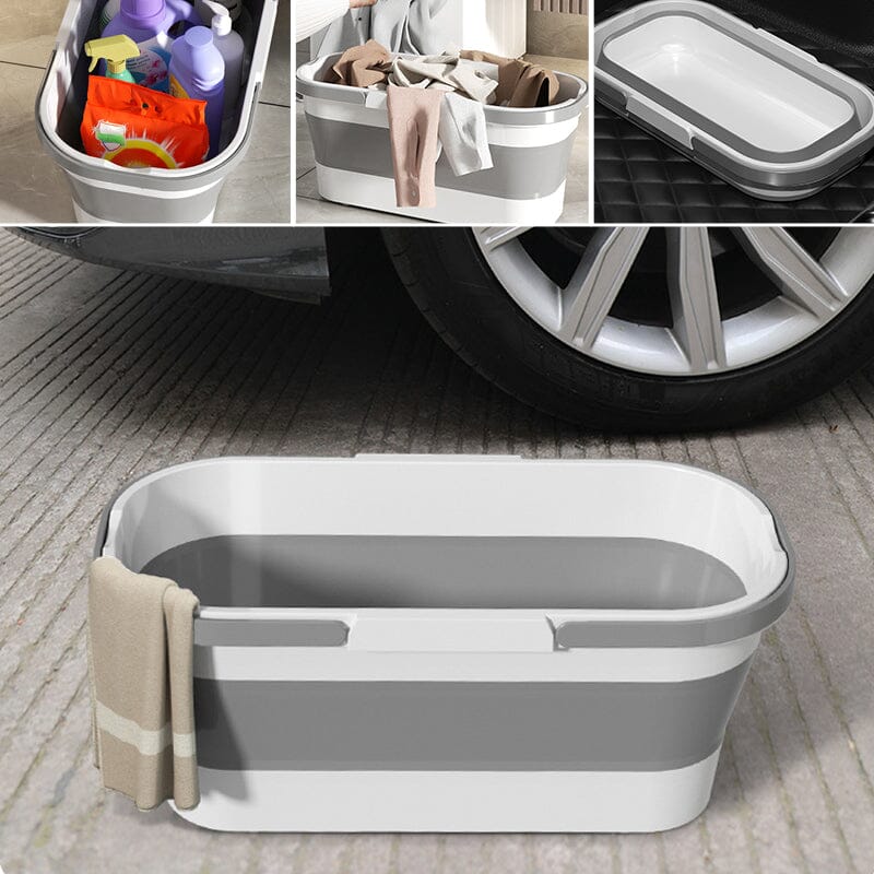 Portable sturdy bucket made of durable plastic material can be folded into a compact size in just a few seconds and is therefore an absolute space-saving miracle when storing or on the go.