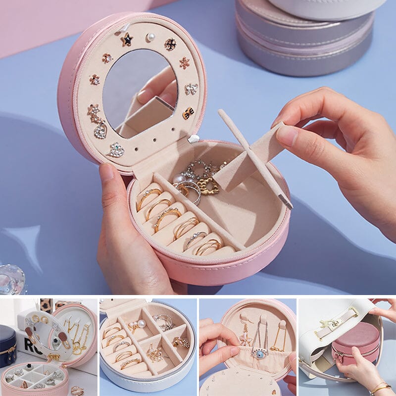 Travel size - 11* 11* 5.2cm/4.33* 4.33* 2.04in, small portable and lightweight Jewelry Box, can easily carry it in your handbag or luggage.