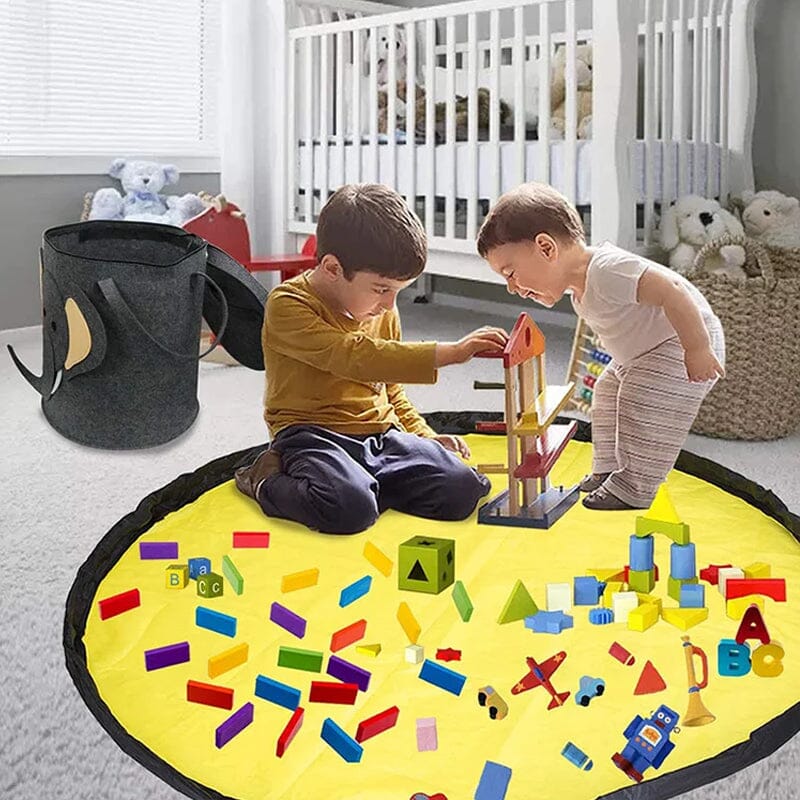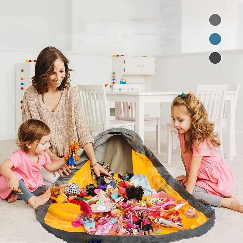 • The Play Mat Simply pull the handles and slide the toys back in the basket when finished playing. The playmat easily fits on top of the toys in the basket so it can all be stored away for further play.