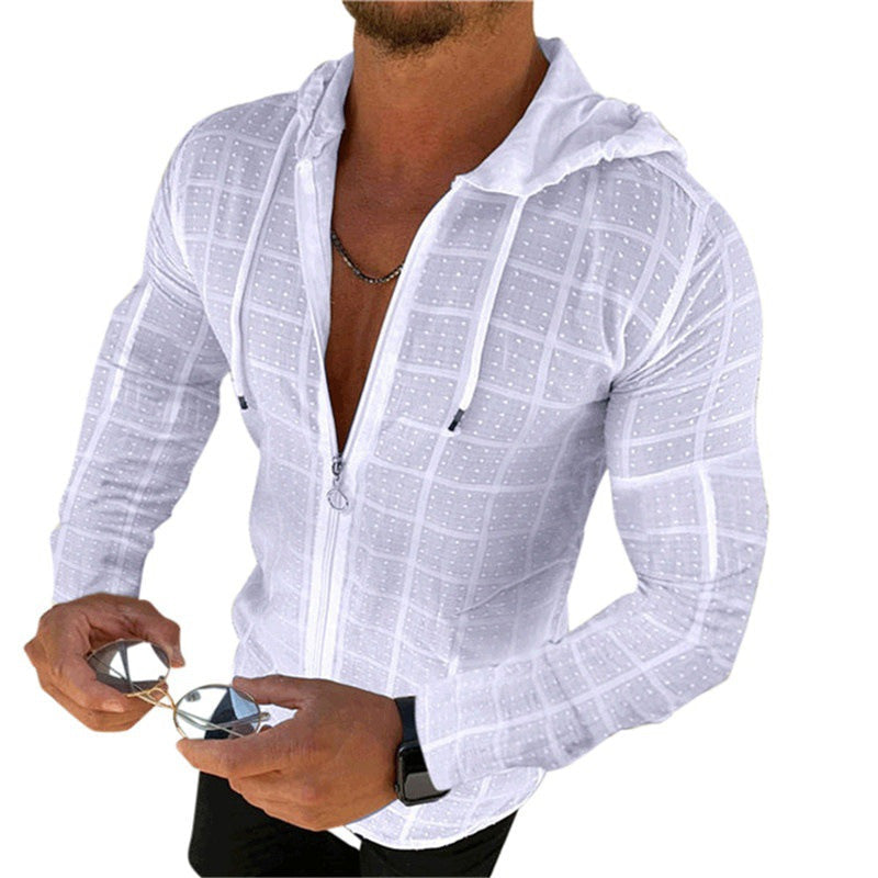 Casual Long-sleeved Shirt Hooded Fitting Cardigan Zipped Cardigan Shirt