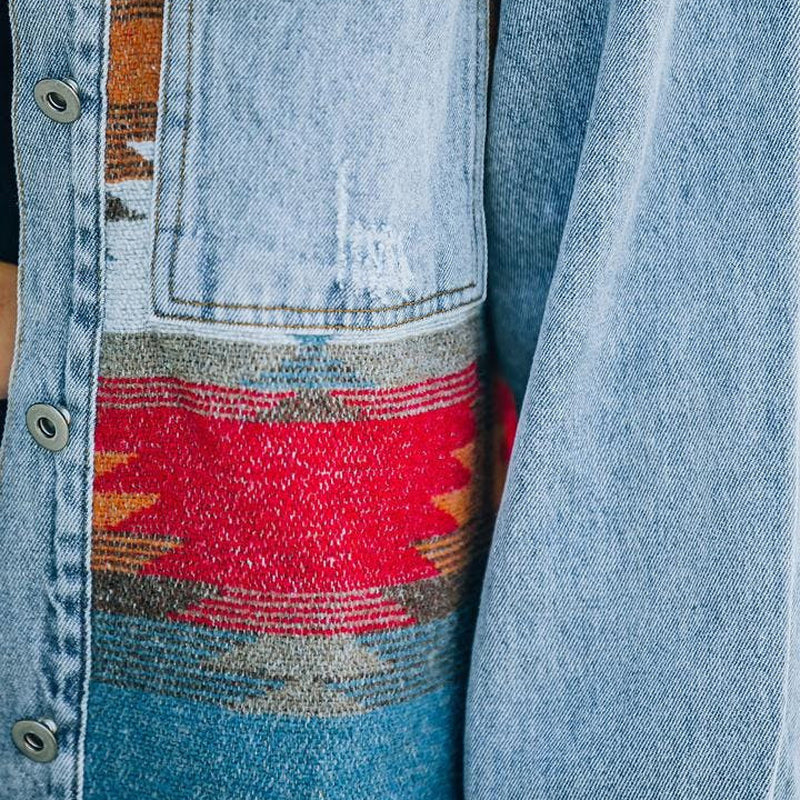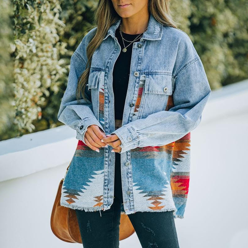 - 1* LAPEL POCKET DENIM RETRO JACKET