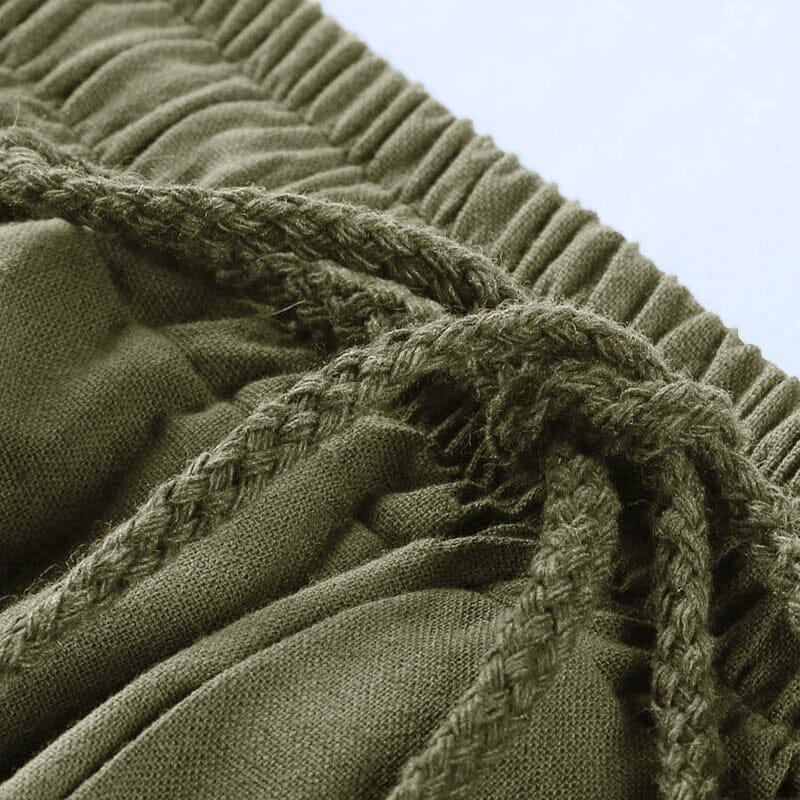 Material: Linen & Cotton. Soft enough ,breathable, lightweight and comfortable.