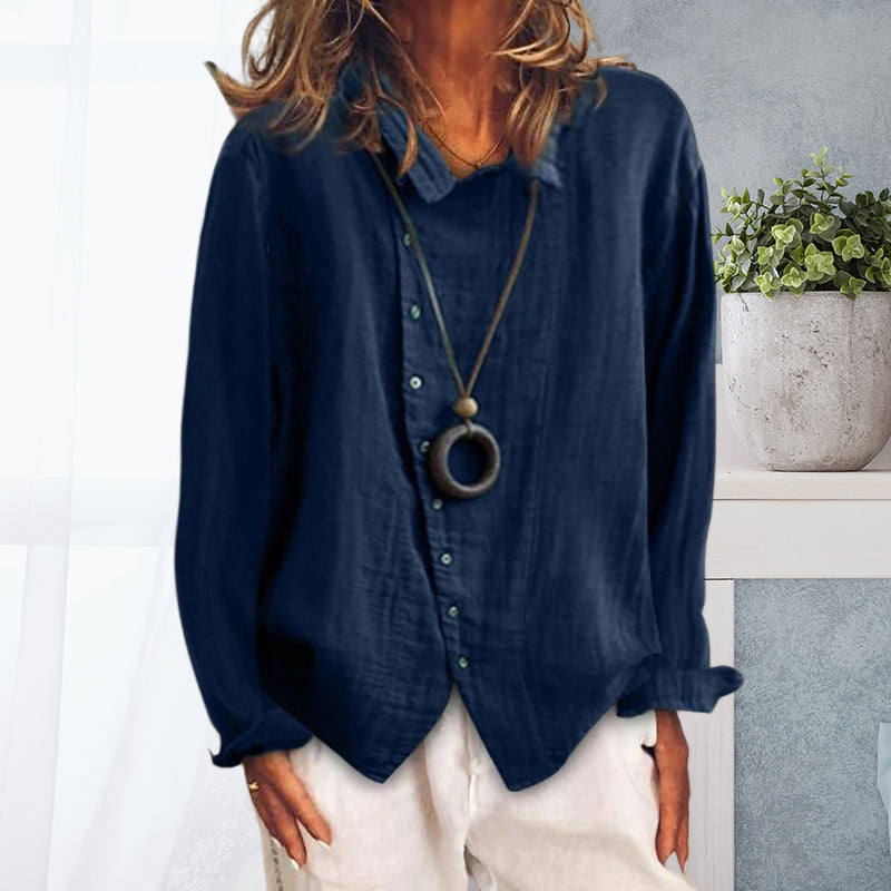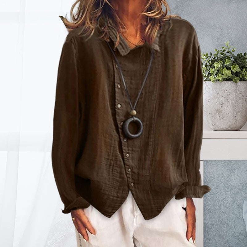 - 1* Solid Color Cotton Linen Lapel Shirt