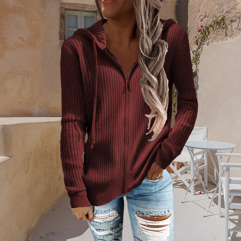 - 1* Stripe Casual Women's Hoodies Loose Knitwear Zipper Cardigan