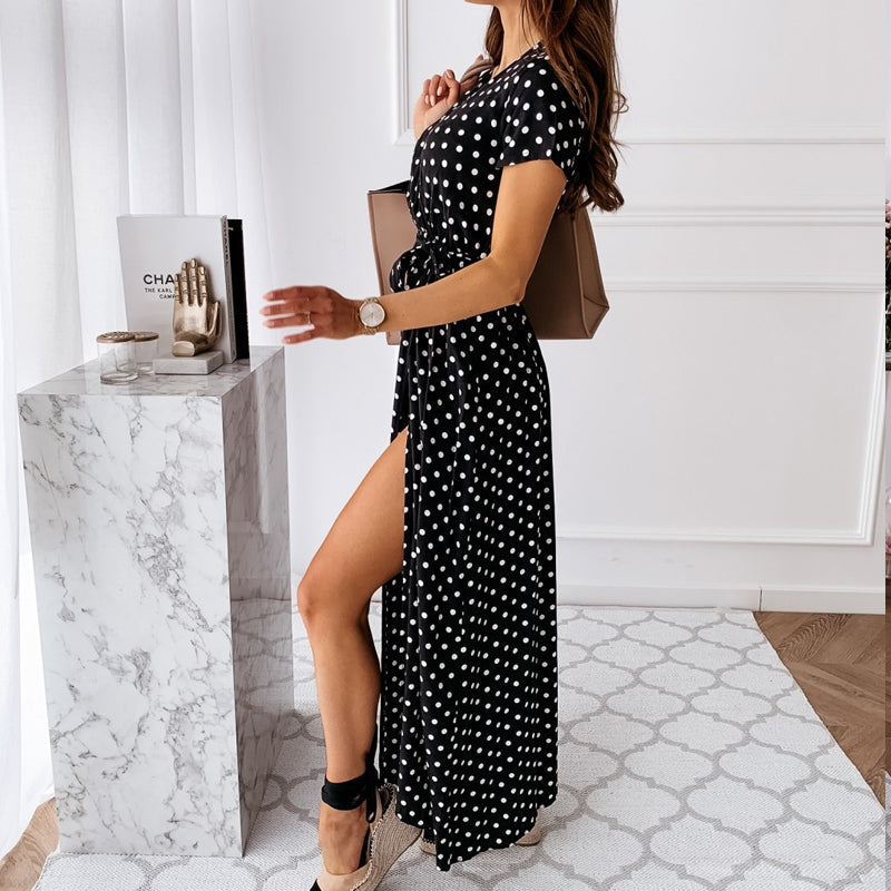 V-neck Polka Dot Print Dress
