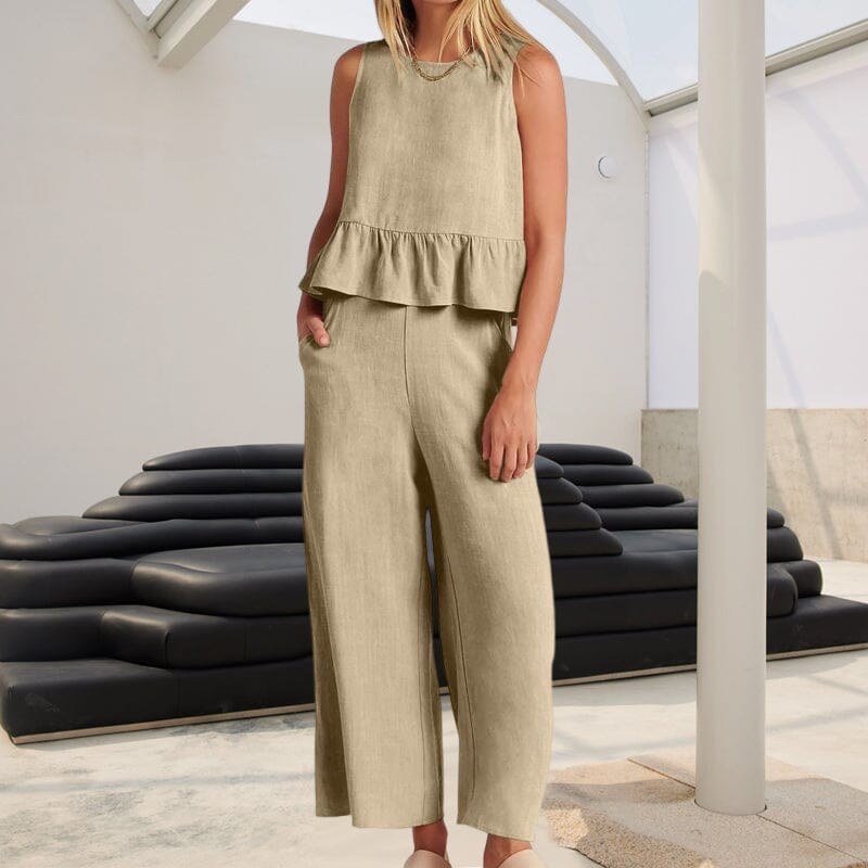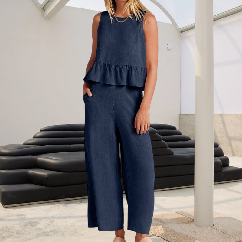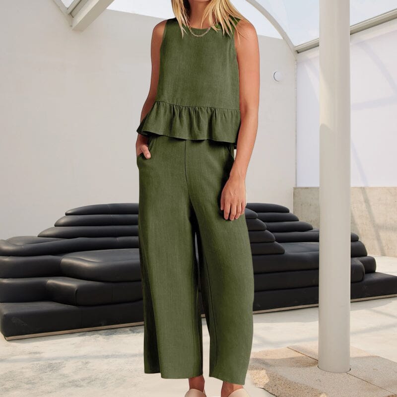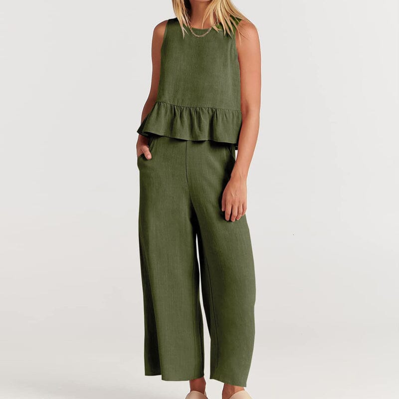 • Package: 1* Women Sleeveless pleated tank top wide leg pants set