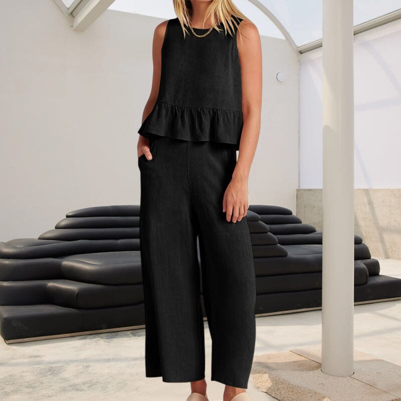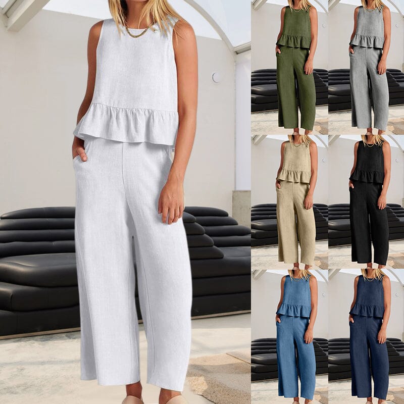 • Designs and Features: Multifunctional Women's Suit / Ruffle Design / Cropped Wide Leg Pants / Crew Neck / Solid Color / Side Pockets / Women's Bodysuits / Women's Jumpsuits / Women's Sleeveless Jumpsuits 2023