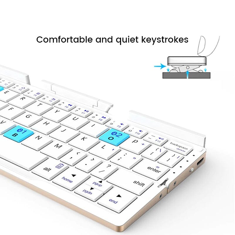 BEAUTY AND SOPHISTICATION: The secret to its foldability lies in the horizontal center line of the accessory, where there is a slit that divides the keyboard in two. To stay closed and easy to store, it comes with a magnetic edge.