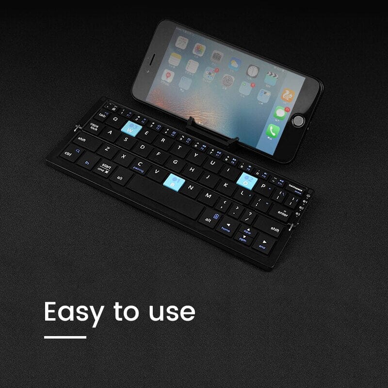 EASY TO CARRY: Fold it and carry it in bags or backpacks. This Bluetooth smartphone keyboard is extremely portable. Comes with a storage bag for convenience.