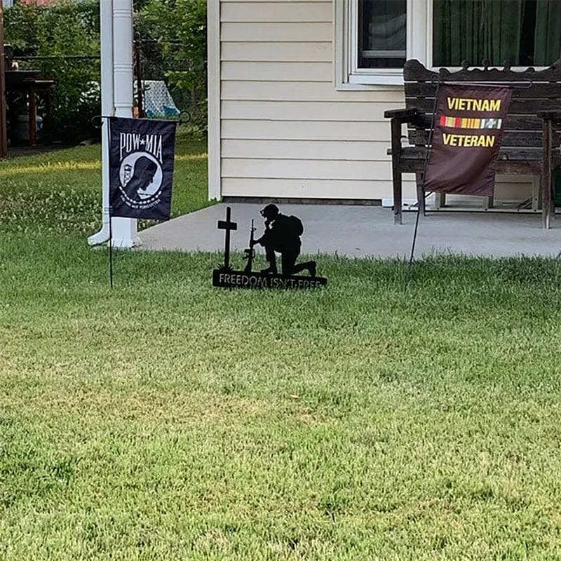 ➲Beautiful and Proud: Show your respect and gratitude to the heroes with this soldier silhouette. It has a kneeling soldier shape design and a pure black appearance that will make your outdoor space beautiful and proud.