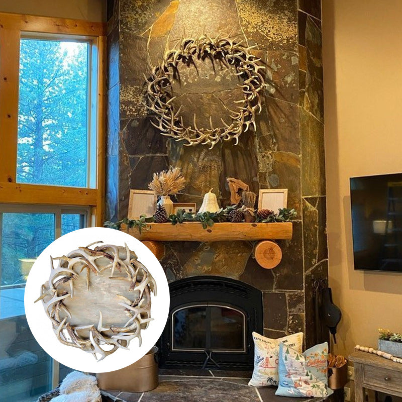 • Display it on a door, window, mirror, fireplace, or above your bed to add a touch of nature indoors.This antler wreath is handmade to order. The wreaths are measured at the very widest point, measurements are approximate and will vary slightly due to the nature of the material.
