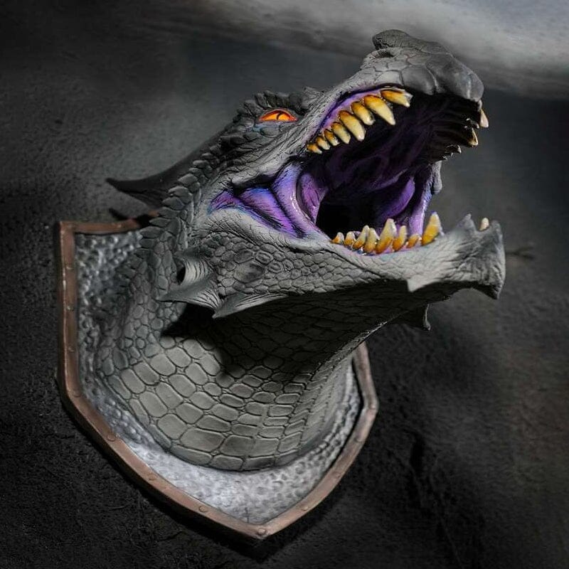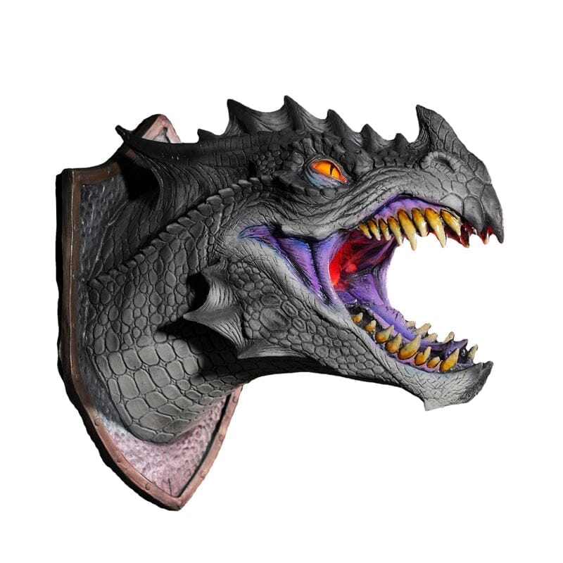• The sculpture and paint on this dragon prop is impressive. Whether you hang it in your home, office, or themed attraction your mounted Dragon Legends will get lots of looks and comments!