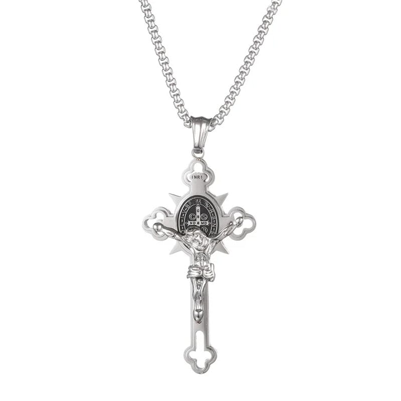 Saint Benedict Protection Pendant: The Saint Benedict protection medal is a prayer for strength, a prayer for peace , a prayer of our light and guide, a prayer of firm rejection of all that is evil.Each of the letters engraved on the front and back of the medal stand for Latin prayers of exorcism.It is a talisman against evil powers.