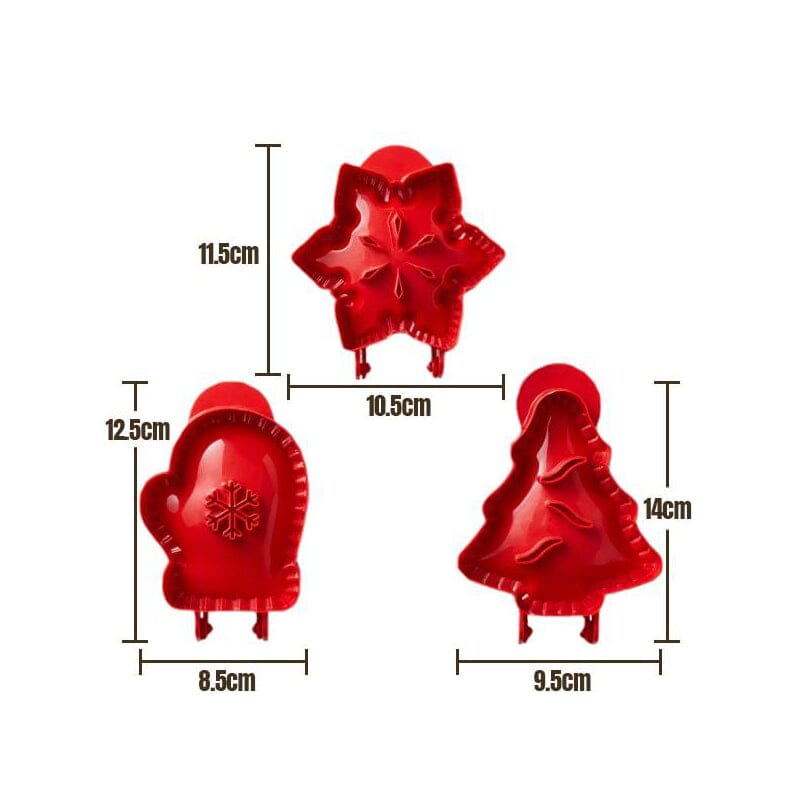 An ultimate go-to pocket pie baking molds featuring a fun, Christmassy theme that comes in the shape of Christmas tree, mitten, snowflake, or all 3 in set selection. It allows you to create your favorite savory or sweet filling pie treat in a cinch with a delightful blend of whimsiness and festive spirit. Making your standard baked dessert extra deliciously looking and creatively molded that would surely amazed and entice anyone.