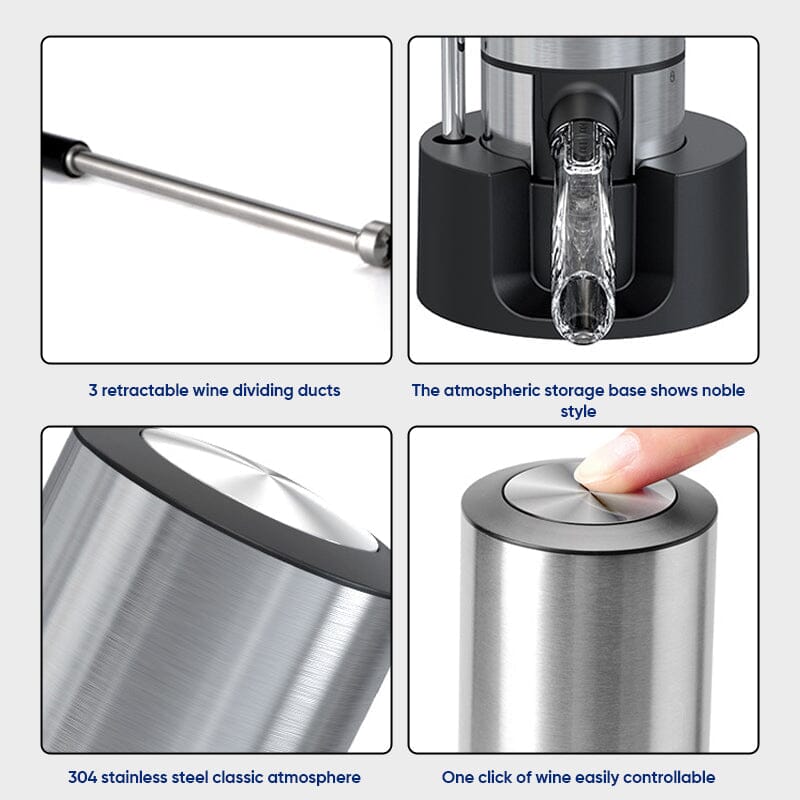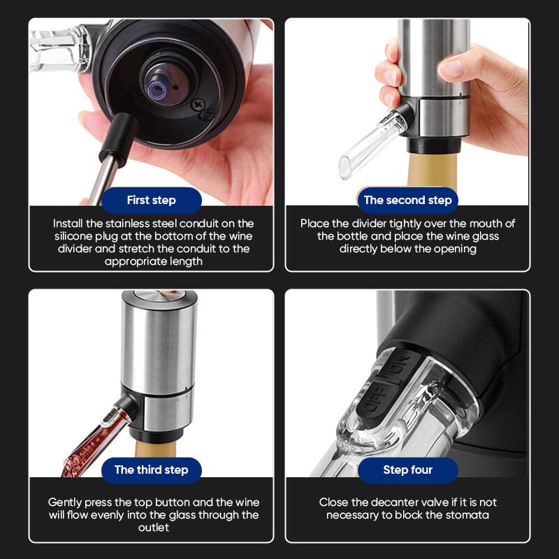🍷[One-key Red Wine Aerator]: One-key on/off, easy and accurate pouring wine from the water outlet without any deposits. The conical nozzle ensures that the wine does not run onto the tablecloth. The advantage of the electric decanter is that it can solve the red wine spilling problem of traditional manual pouring.