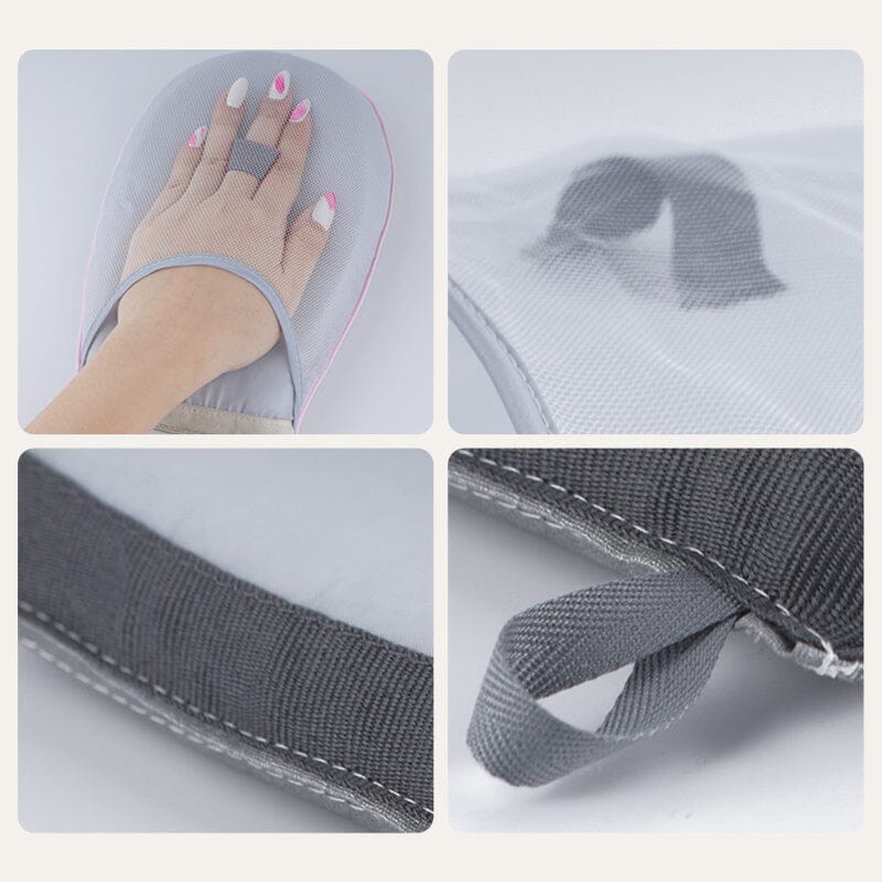 Ergonomic Design: It is designed with a lengthened and widened area to fit any hand sizes and fully shields your palm and wrist from the heat. The pad has a breathable mesh cover to provide your hand some ventilation and prevent it from sweating while using it. Furthermore, it comes with a convenient finger buckle loop to give your hand a stable hold and easy control. Preventing it from slipping and constantly adjusting so you can quickly iron or steam your clothes without burning yourself.