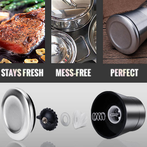 MESS-FREE: No need to get salty over a spill! The stainless steel top on our mills ensures your spices go where you want them to go, not all over the kitchen table.