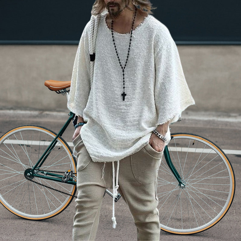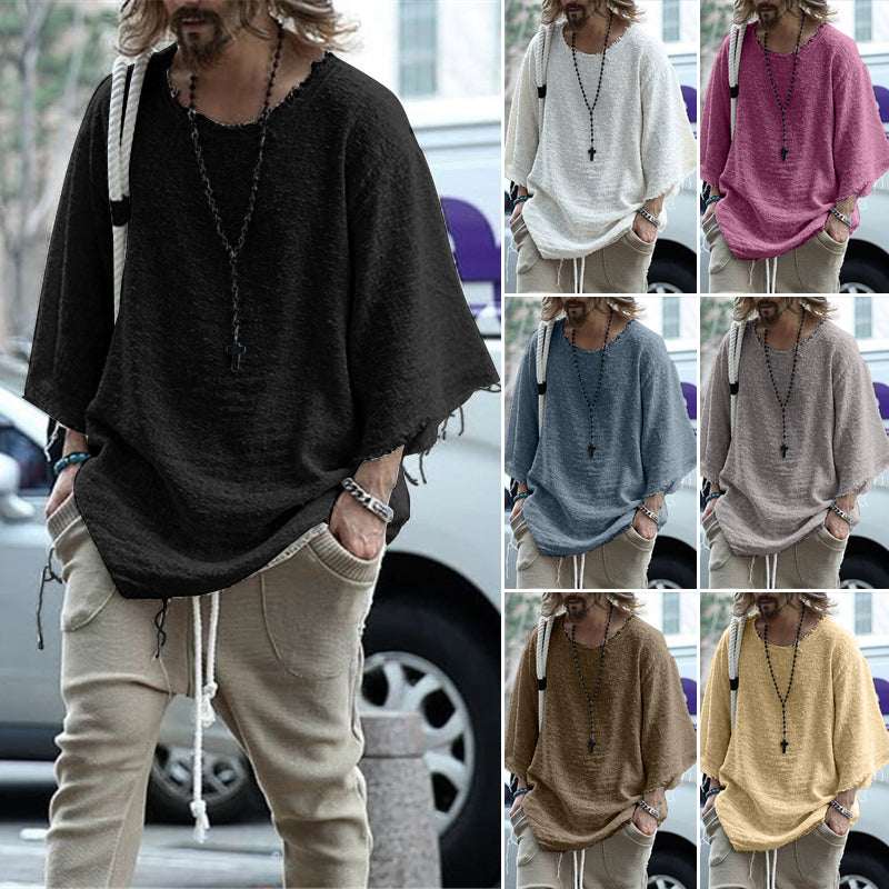 Casual Shirt Design: Long sleeve solid color loose men's t-shirt design with round collar, long sleeve, solid color, loose fit, rounded hem. Simple design will not go out of style.