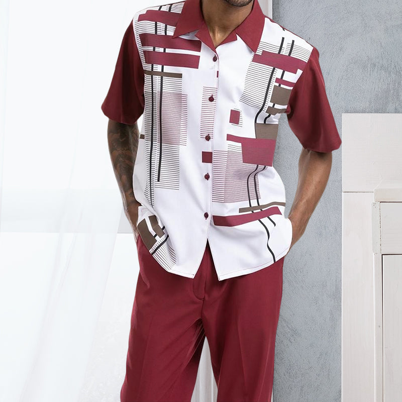 - 1* Two Piece Short Sleeve Print Walking Suit Set