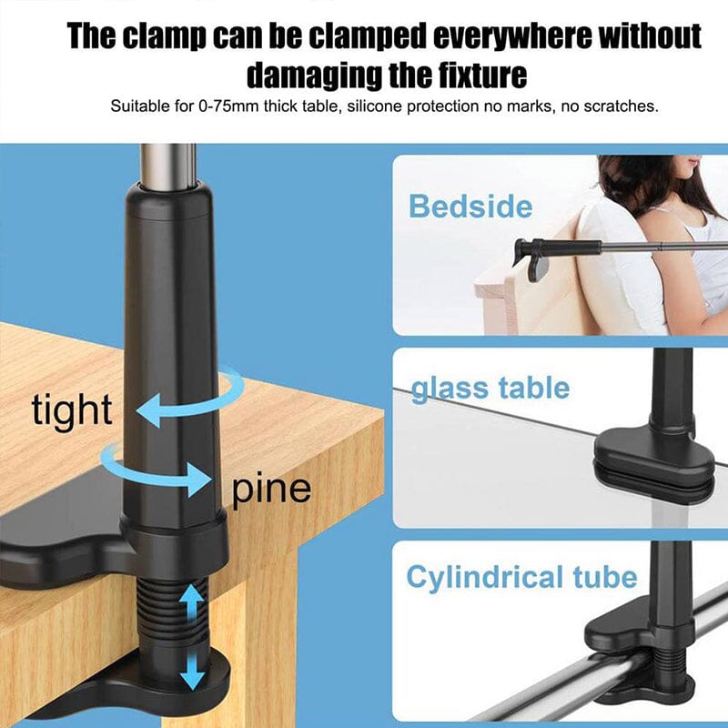 • 【Reinforced Stand Base】The stand increases the thickness of the base clip and provides a larger contact area, which can be firmly installed on a table, headboard, bedside table or kitchen countertop, etc. Great for watching movies, playing games, reading, viewing recipes, recording videos, and more.