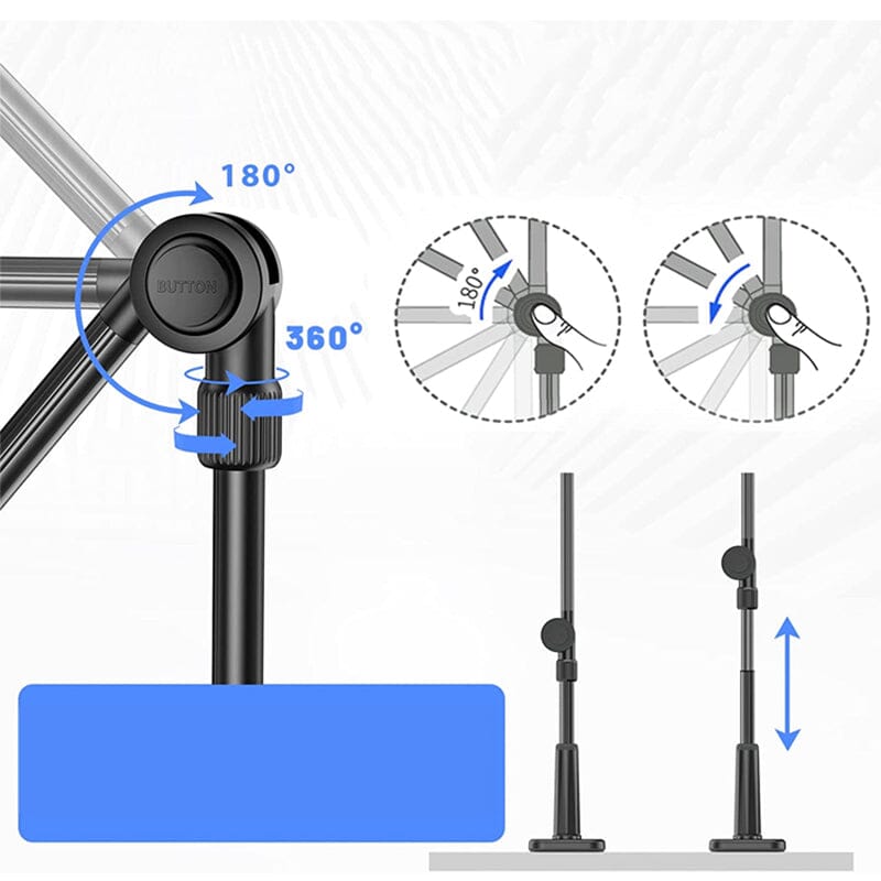 • 【Angle Adjustment Freely】This desk stand can be adjusted vertically 225° and horizontally rotated 360°. With flexible gooseneck solid arms, you can easily bend it to your desired viewing position. TIP: It is recommended to bend into an "S" or "Z" shape for greater stability.