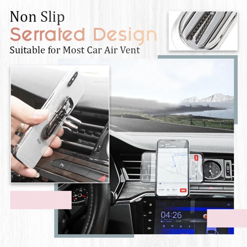 - NON-SLIP SERRATED - These finger kickstands are mainly made of zinc alloy, coming with silicone serrated clips, easy to clip on the vent while will not hurt or scratch the vent, suitable for most car air vent.