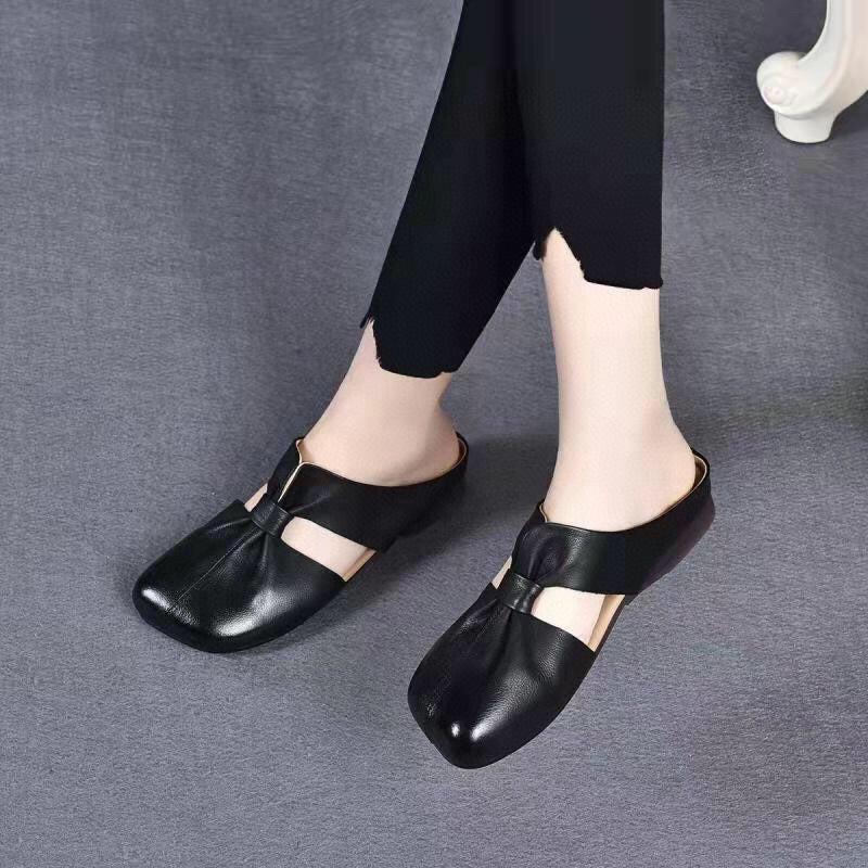 Package: A pair*Summer Retro Flat Slippers Genuine Leather Sandals