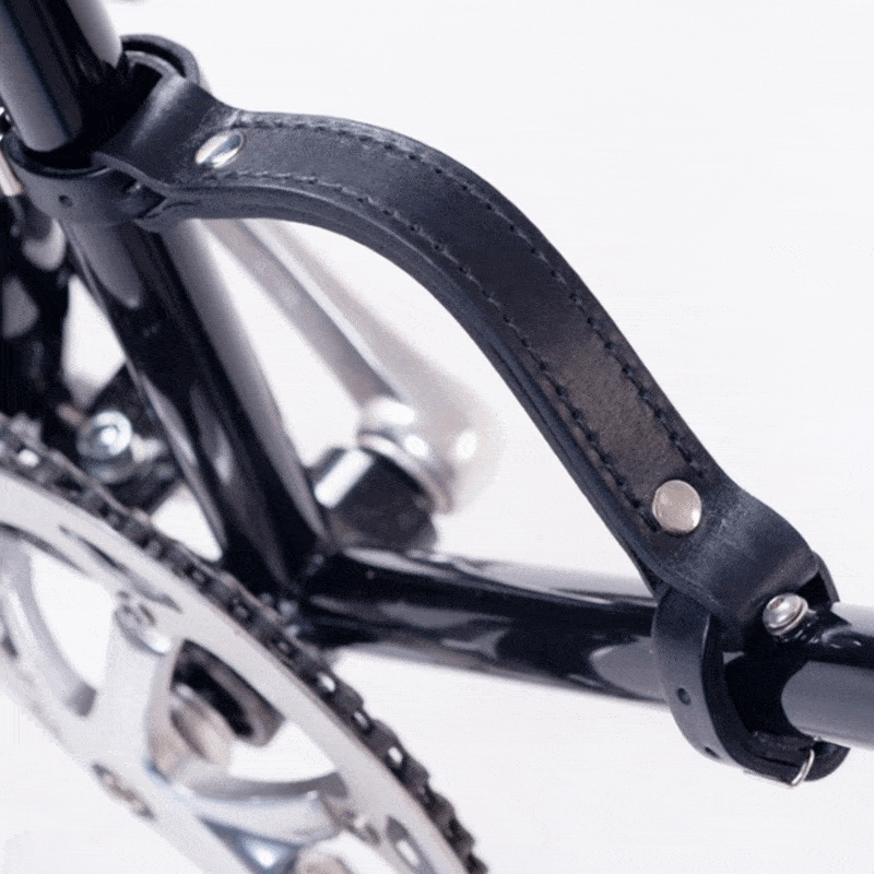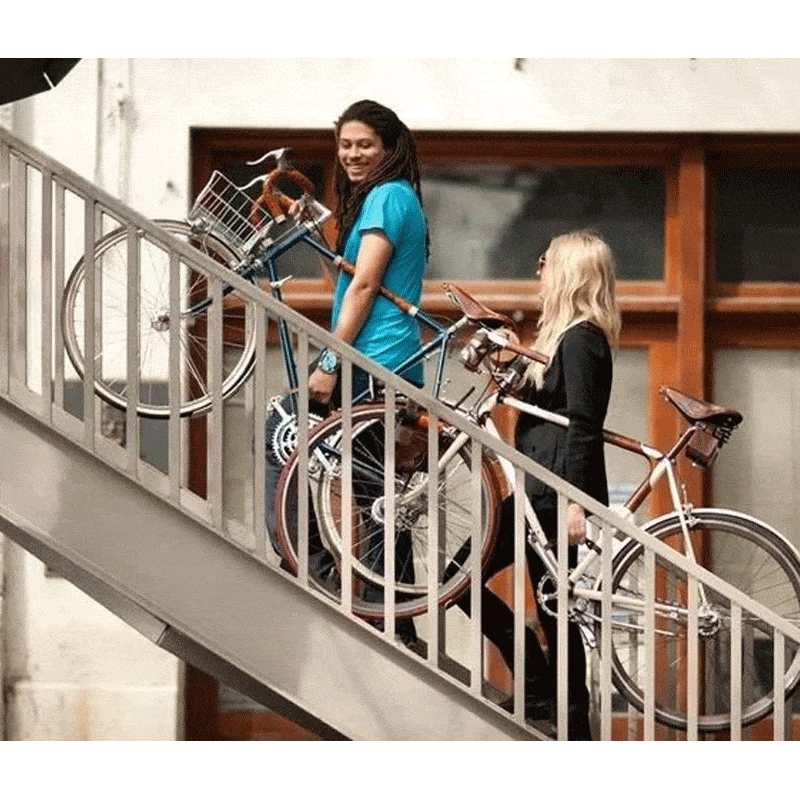 Just like attaching the briefcase handle to the bicycle, the frame handle lowers the center of gravity of the bicycle and utilizes your most commonly used muscle groups, making the lifting feel easier, lighter, and better controlled.