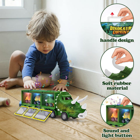 Beautiful boxed packaging. It is the best dinosaur toy truck for toddlers who love trucks and dinosaurs. Suitable for 3-12 years old boys and girls. It will be a great gift for birthdays, Christmas, parties, holidays.
