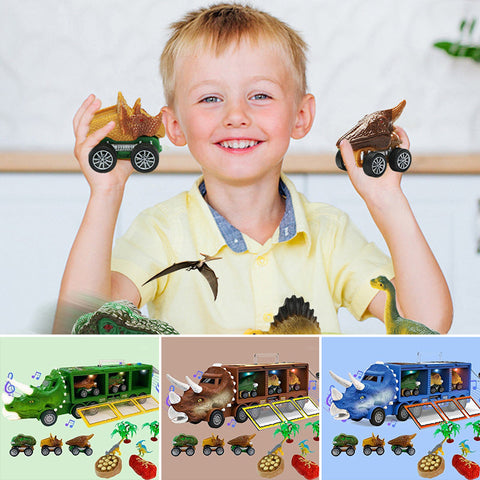 Press the button on the body, you can see the flashing lights, listen to realistic music, dinosaur sounds and car sounds, which is very attractive to children.