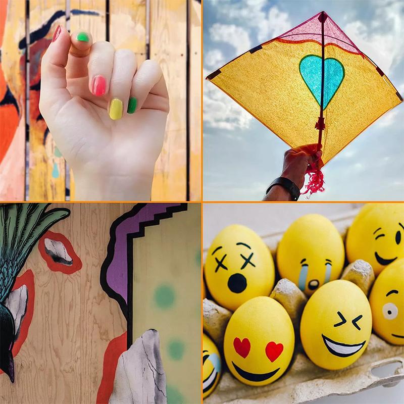 The paint is non-toxic, water-resistant, and UV-resistant. You can even mix the colors. Great for indoor and outdoor use.