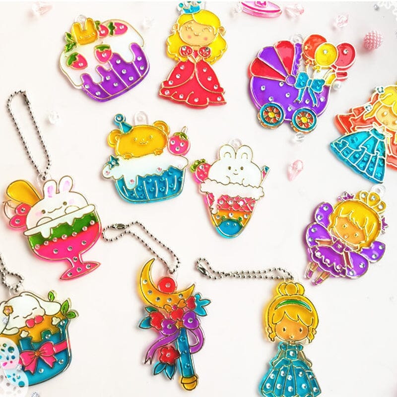 - Crystal pendant*6 + color painting*6 + chain*6 + tweezers*1+ 3 packs of diamonds +1 pack of color beads + clothesline*1