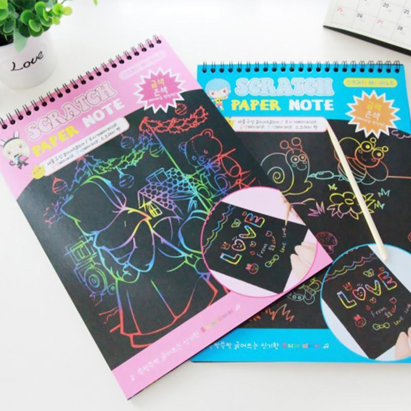 - Scratch Art Paper - including art notebooks(28*20cm), 1 drawing pen. Each notebook has 10 sheets of scratch paper.