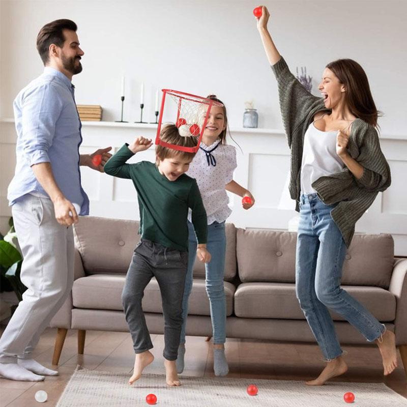 - Try hoop as many balls into the net as you wear it on your head. Whoever has the most balls hooped at the end of their turn is crowned the winner and gets to do a little victory dance.