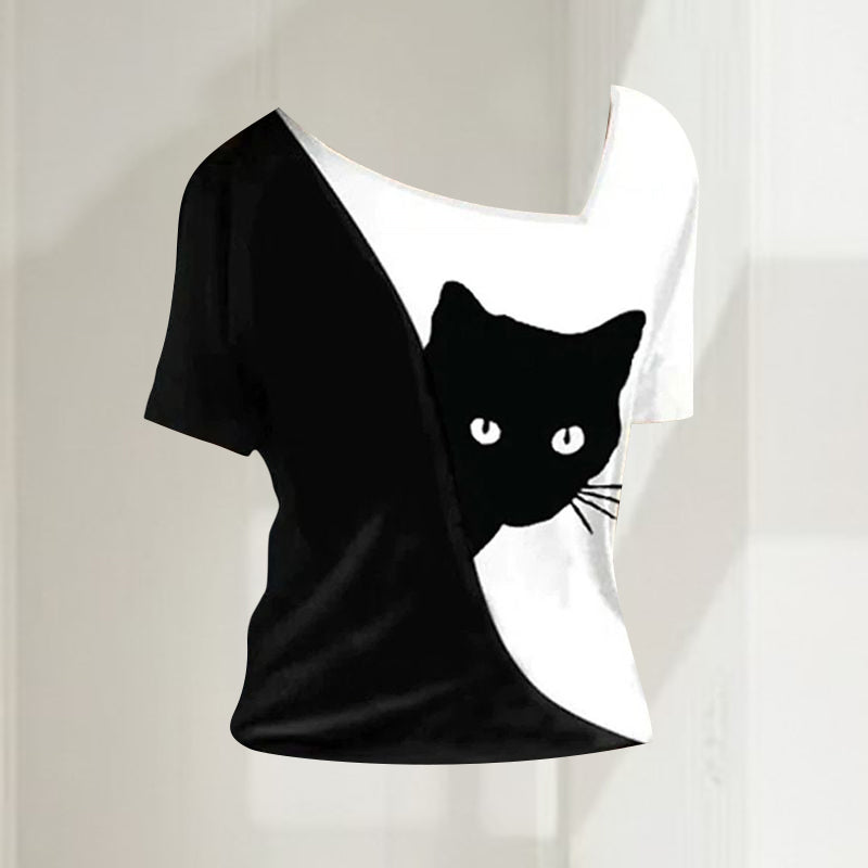 • 【Featuring】This funny stylish t-shirt with a black cat, is perfect for Halloween. Goes well with accessories such as sunglasses and hats, this adorable tee makes it easy to take good photos.