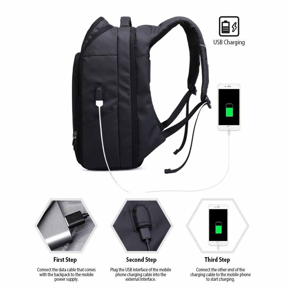 Multifunctional backpack supports up to 17 inch notebooks, USB port for charging your phone and waterproof material.